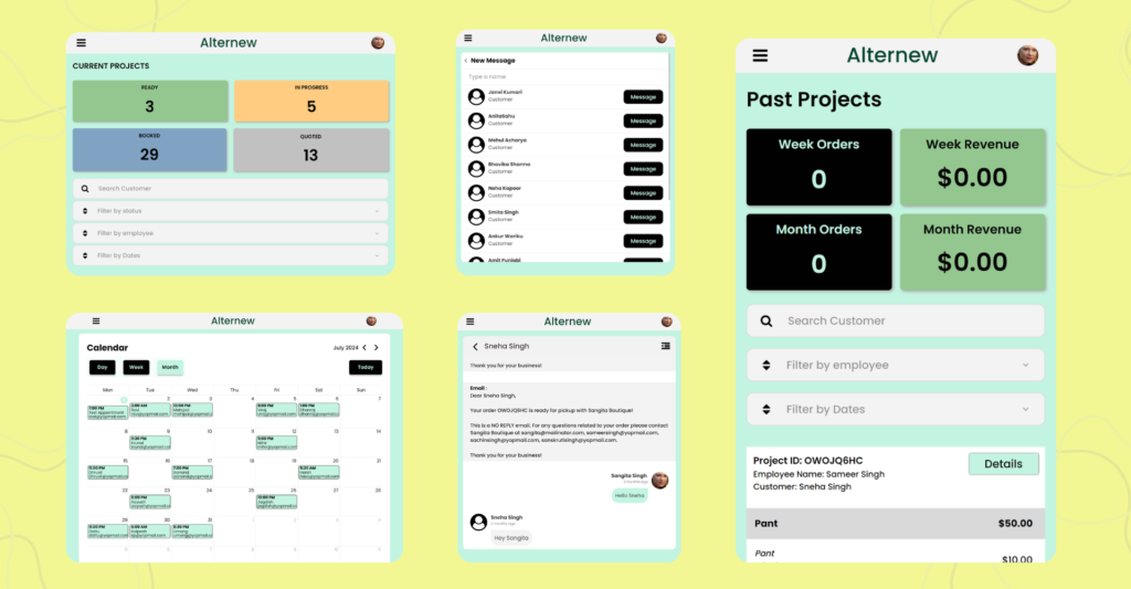 Alternew is a responsive web app designed to connect local tailors with clients, as well as facilitate partnerships between brands and tailors for alteration work within stores. Built to enhance the tailoring and alteration service industry, Alternew provides a robust platform where tailors can easily manage their business operations and client interactions.